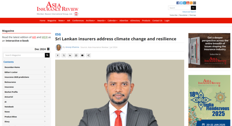 I was featured in Asia Insurance Review to share my perspectives on the urgent matter of Climate Change and how Sri Lankan insurers can confront and adopt to this challenge.