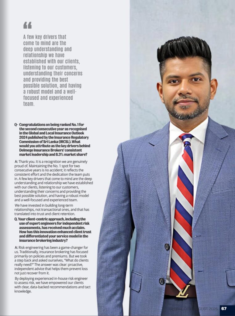 In August, my insights on leadership and the insurance landscape were published in Global CEO Magazine. Sharing the story of our journey at Delmege with a global audience was a humbling experience that reinforced the importance of thought leadership in our sector.
